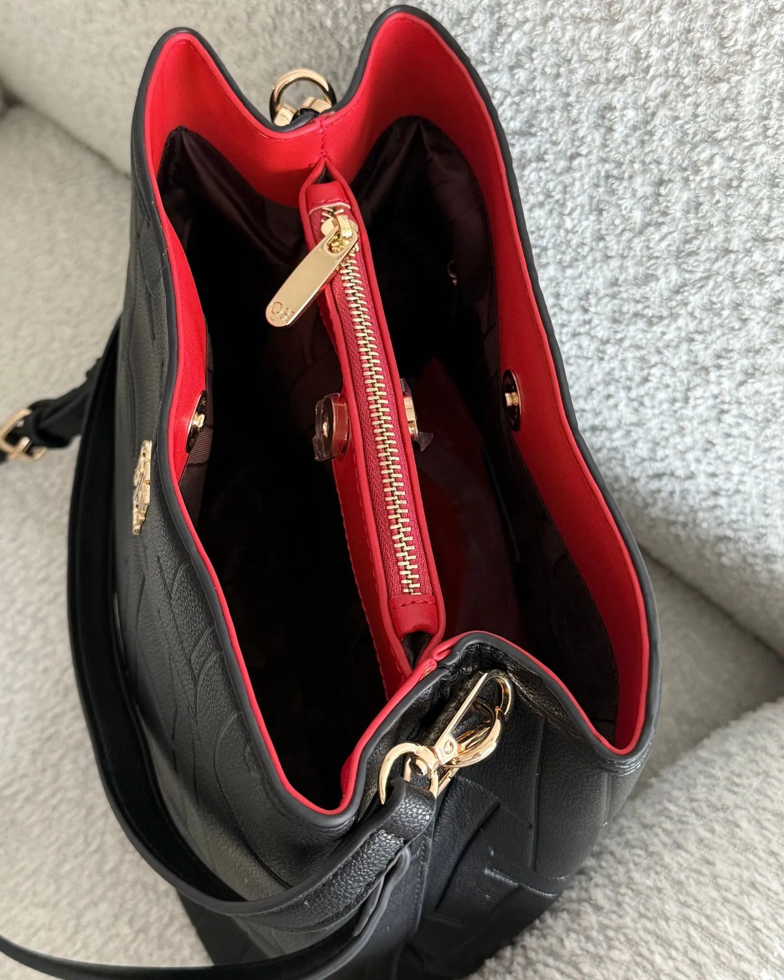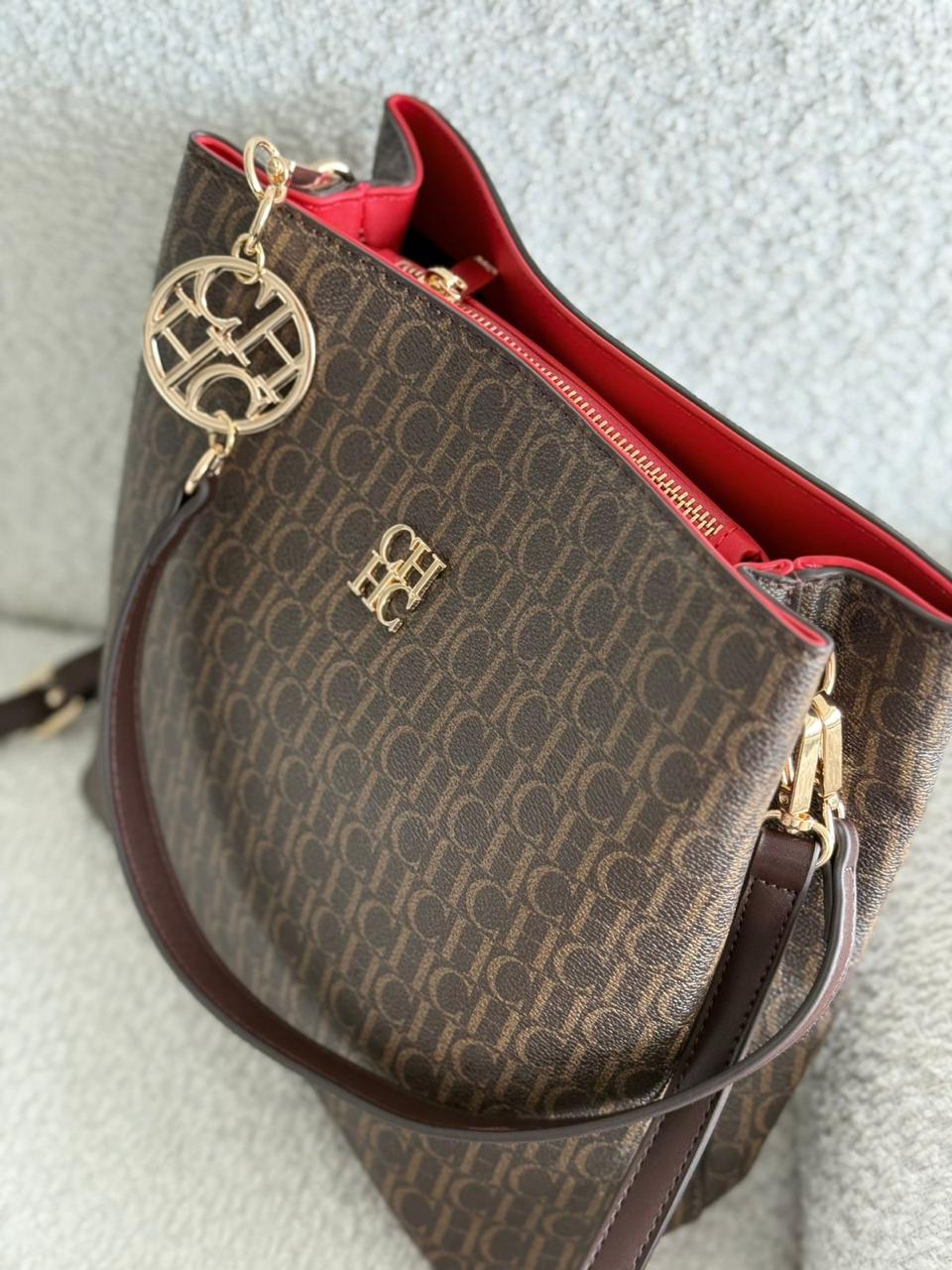 Tula mediana bolsillo interno coin cierre y broche , es decir tiene 3 compartimentos ,con doble reata